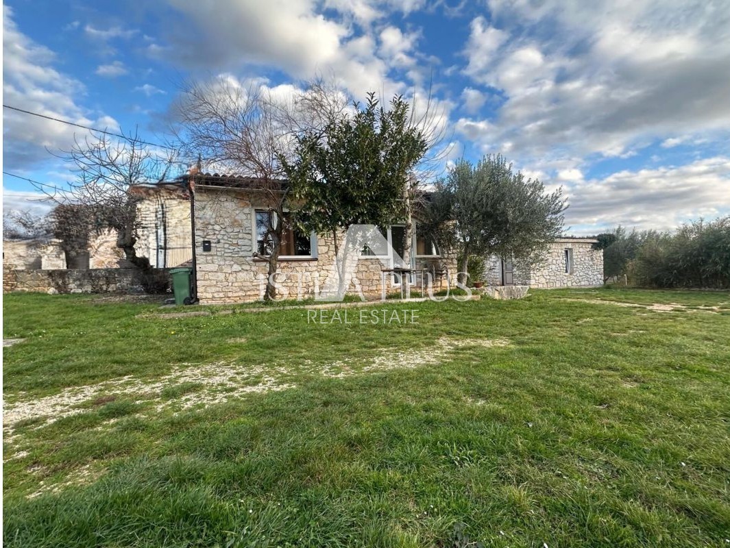 A house, a single-storey house made of authentic Istrian stone, with an area of 49 m², with an outbuilding of 22 m², located on a spacious plot of 536 m², surrounded by greenery and nature.