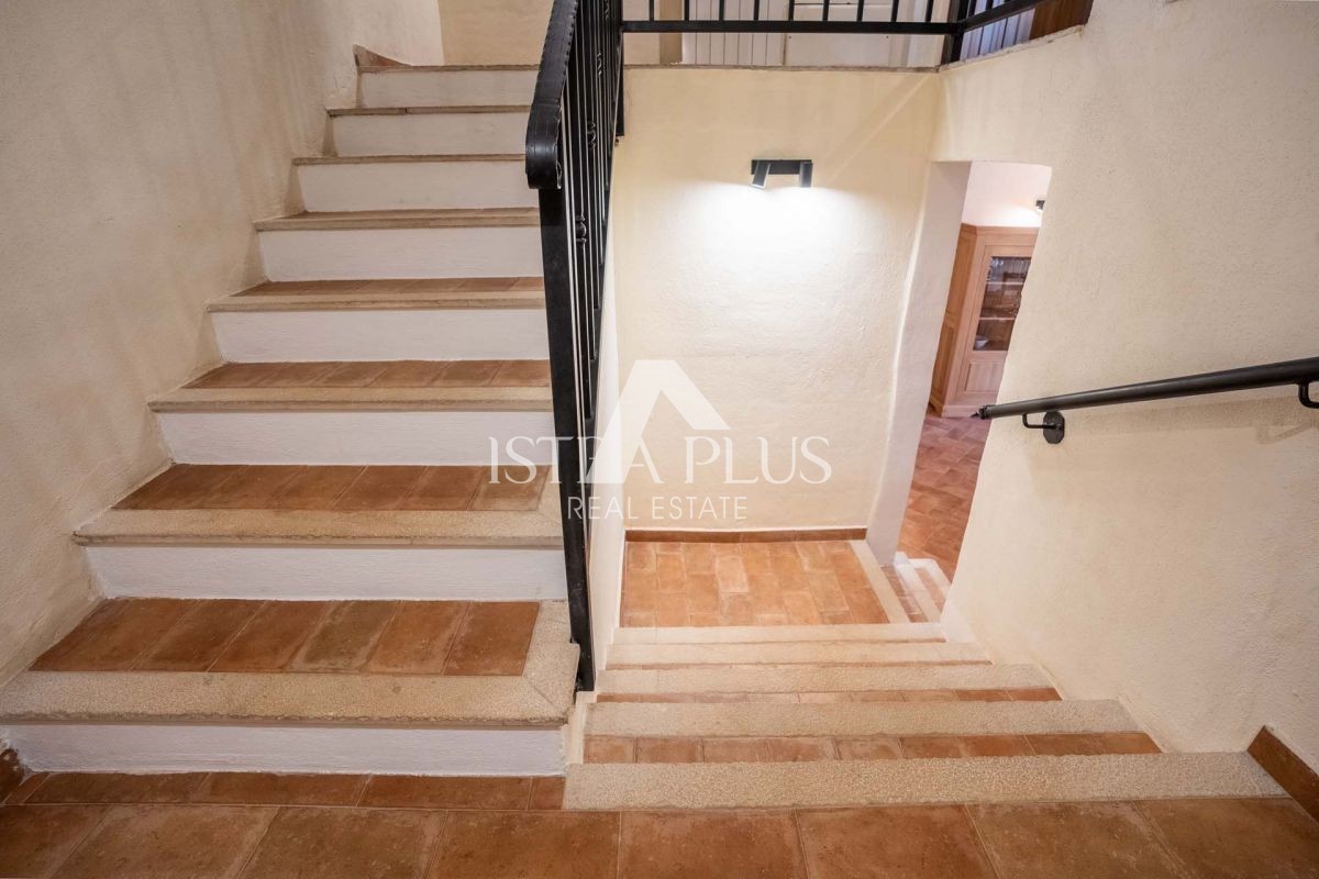 Upstairs is the master bedroom, which also includes a relaxation area – an ideal place to completely retreat from everyday life. The room opens onto a spacious balcony with a panoramic view of the pool, surrounding houses and the sea horizon. In the immediate vicinity of the room there are two elegantly decorated bathrooms.