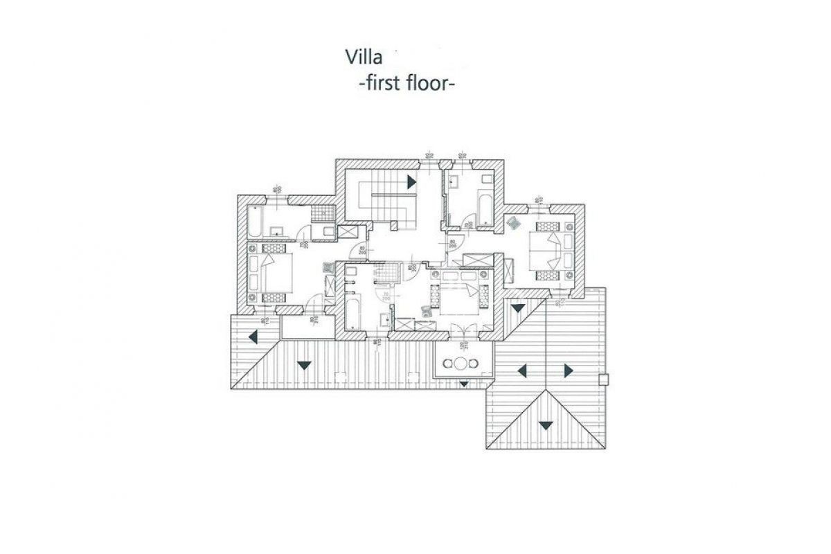 U prizemlju se nalazi jedna spavaća soba s vlastitom kupaonicom i izlazom na terasu, dok se na katu nalaze tri dodatne spavaće sobe, svaka s vlastitom kupaonicom. Dvije sobe imaju i privatne balkone s pogledom na more.